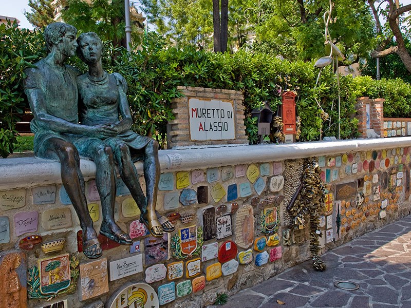 Le Muretto avec la sculpture en bronze d'Eros Bellini et, à droite,