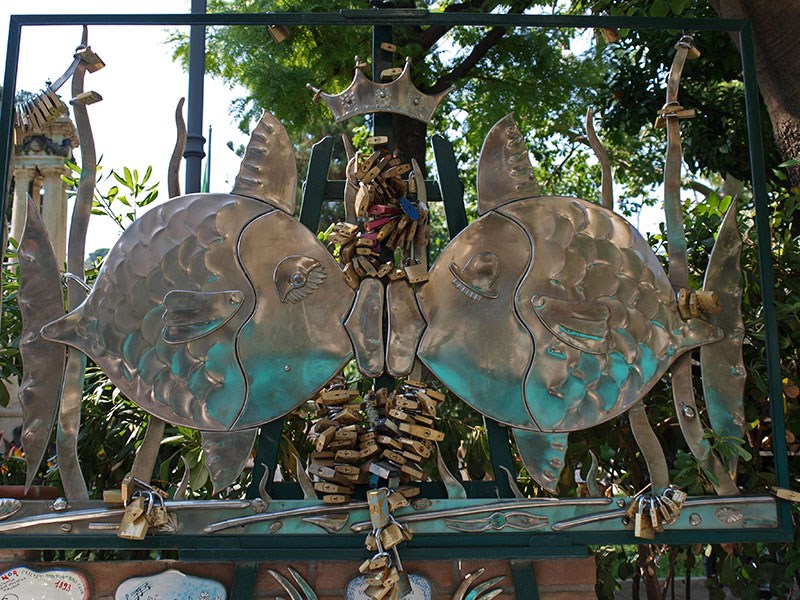 Sculpture en acier de G. Mastroianni : les poissons, symbole d'Alassio.