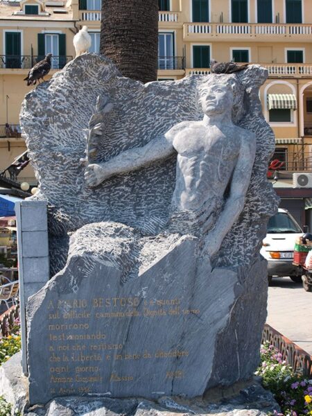 Monument dédié à la Résistance et à Mario Bestoso à l'entrée de la jetée qui porte son nom. (sculpture de Raffaele Mondazzi )