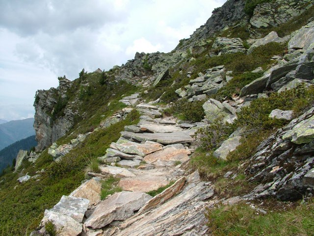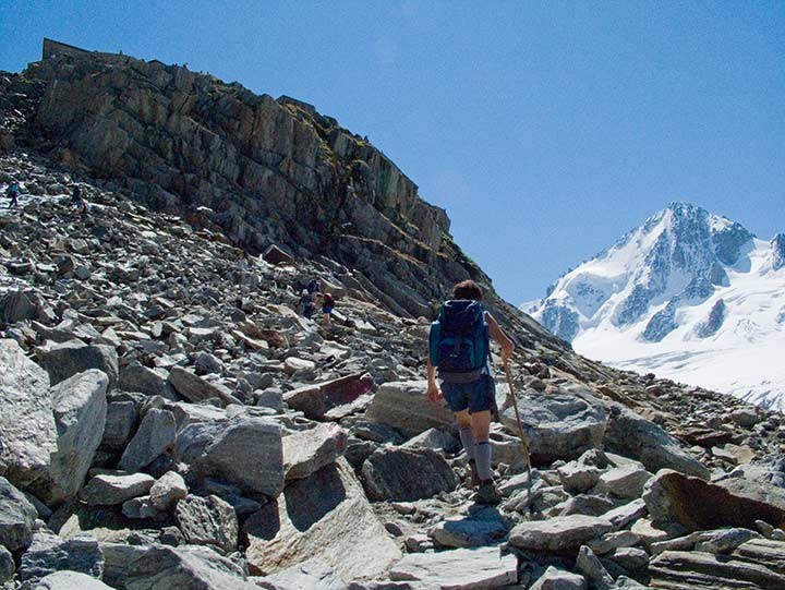 Chamonix : vue sur le sentier par la moraine qui mène au refuge ( Glacier du Tour).