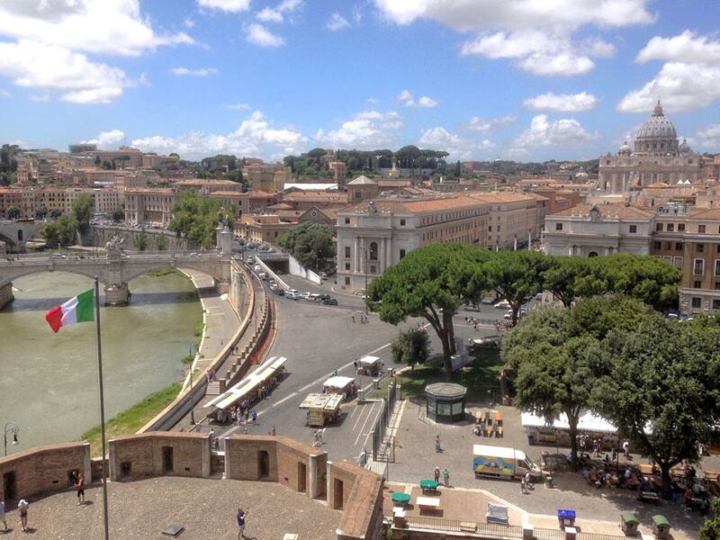 Vue de Rome depuis une terrasse du château Saint-Ange